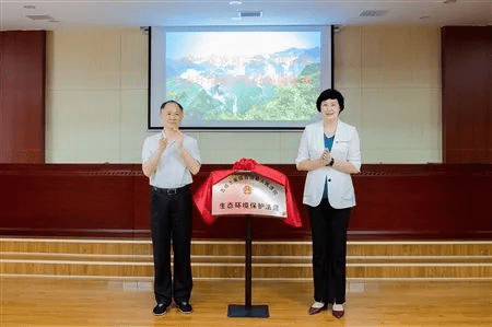 (7月12日,宜昌中院院長雷涌泉(左)為五峰法院生態環境保護法庭揭牌。)