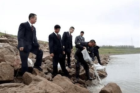 (2020年9月,在法院、檢察院和農業農村局工作人員的共同監督下,被告人莊某將2000尾魚放入當陽市河溶大橋上游的禁漁區。)