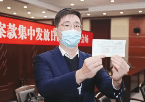2021年11月,武漢中院集中發(fā)放執(zhí)行案款,一案件委托代理人展示剛領(lǐng)到的支票。李金星 攝