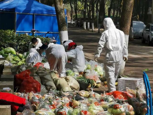 我所居住的華中科技大學校園也是這次疫情的風暴眼。就地下沉后,我主動擔負起“快遞員”“代購員”“服務員”的責任,拿快遞、組織團購到分菜,總是盡心盡力。我的先生彭濤,是華中科技大學的老師,也第一時間報名參加學院抗擊疫情突擊隊,入戶排查、輪流值守、網格值勤,每周六還去所在的科學中心為價值上千萬的科研設備加注零下196度的液氮,以保障設備安全運行。得知華中科技大學校友會給禁足在校園內的教職工定向捐贈了一批愛心菜,我和家人,同志愿者們一道把10000斤蘿卜、10000斤洋蔥、35000斤甘藍、4000斤蒜苗、1000斤芹菜從車上卸下來,分到每一個袋子里,再送到校內的住戶手中。