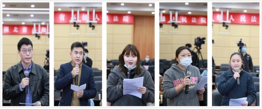 省法院刑事審判第三庭庭長賈亞勝、民事審判第二庭庭長張競、審判監(jiān)督第一庭庭長劉剛、執(zhí)行局副局長段鈞、行政審判庭副庭長黃瑩參加發(fā)布會并回答記者提問。宣傳處副處長鄧昭玲主持發(fā)布會。